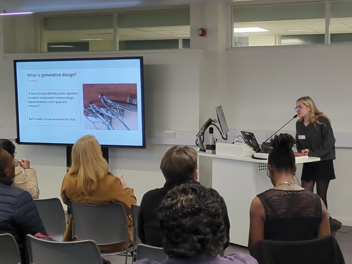 Connie demonstrated generative design technology using Autodesk Fusion 360, how CAD modelling can optimise engineering designs to create components that are both stronger and more material efficient.